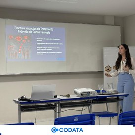 A palestra foi ministrada por Julia Monteiro Agra, Encarregada de Proteção de Dados (DPO) da CODATA, e Danillo Salviano Gomes, Analista Administrativo e Especialista em LGPD, também servidor da Companhia. A apresentação buscou esclarecer o papel dos policiais penais como agentes de tratamento de dados e reforçar a importância da proteção de dados como parte fundamental da atuação pública, especialmente no contexto da segurança.